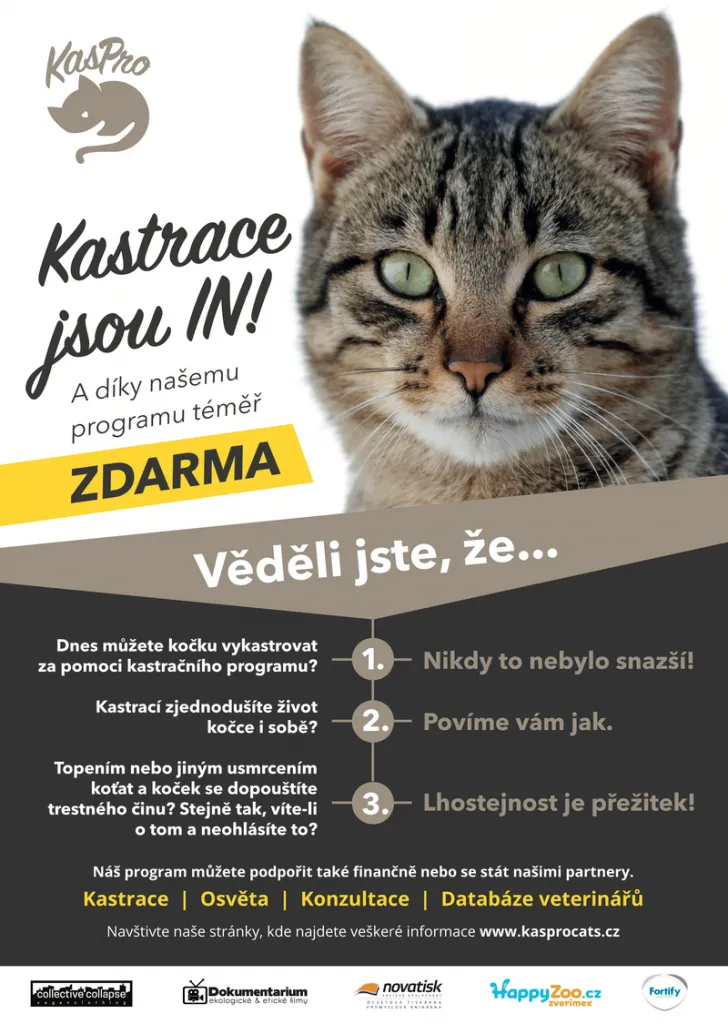Pro komplexní informace můžete také navštívit stránku www.kasprocats.cz, kde se dozvíte veškeré odborné informace na téma toulavých koček a kastrací.