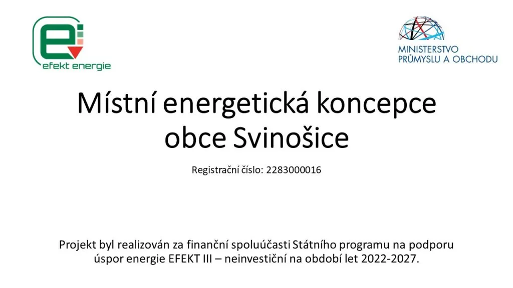 „Obnova soustavy veřejného osvětlení v obci Svinošice“ v rámci programu EFEKT pro rok 2020 ze Státního programu pro podporu úspor energie pro rok 2020 z Ministerstva průmyslu a obchodu.