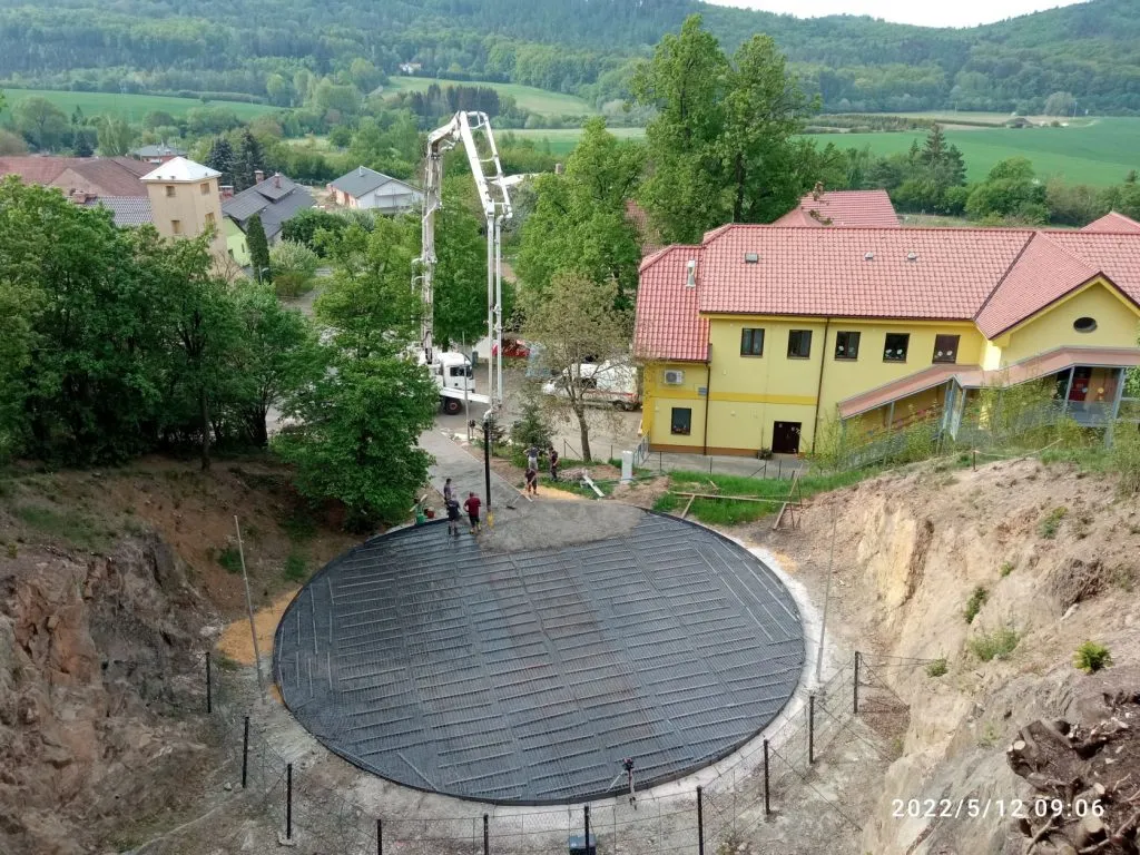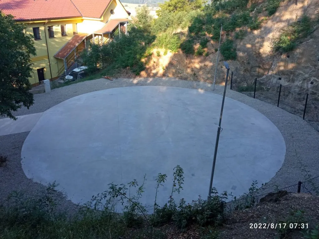 Betonáž prostoru lomu o průměru 18 metrů a přístupového chodníku provedla společnost DM Concrete s.r.o. Brno.